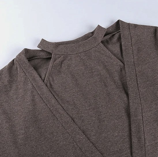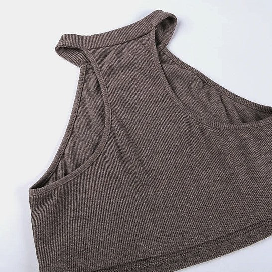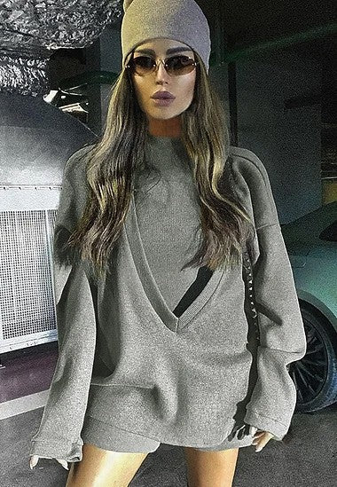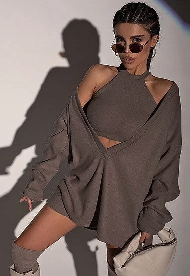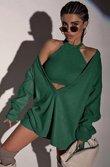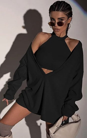 High neck sleeveless crop top with Deep V neck long sleeve loose fit sweatshirt set